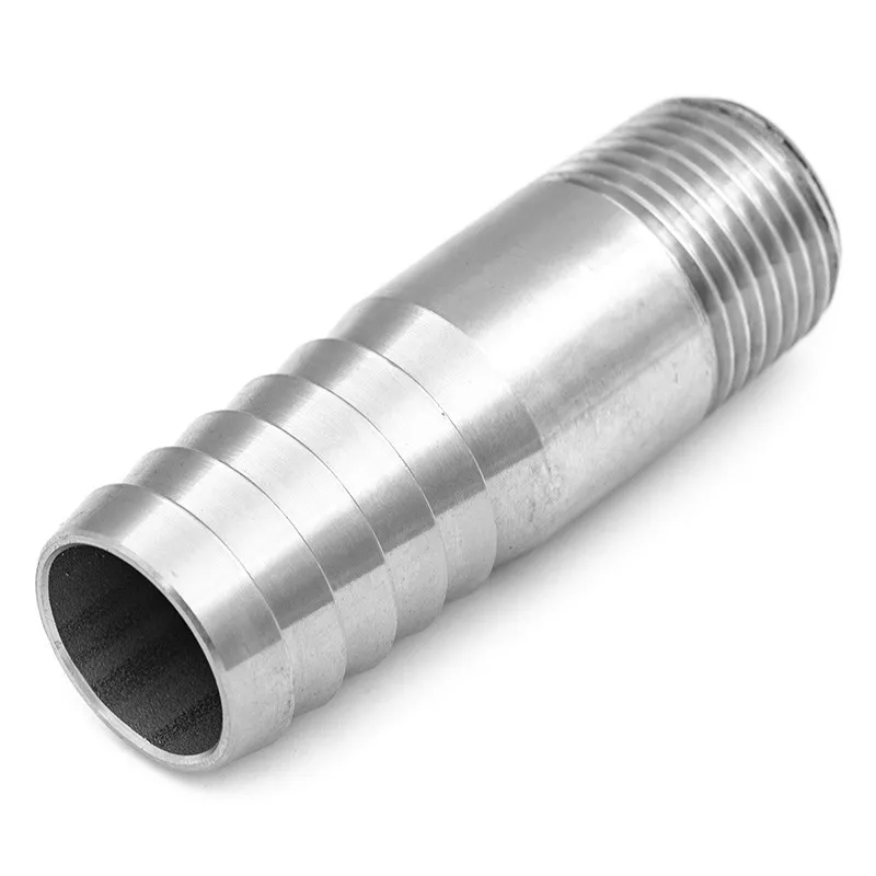 Cylindrical plug with a male end and a BW end, machined from 316L EN 10217-7 stainless steel tube, for use in piping systems used in the chemical industry.