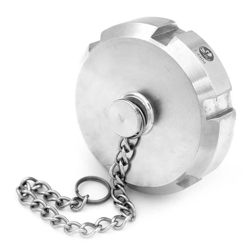 SMS 1145 blank nut with chain made of 316L stainless steel, for food industry installation, made in France by Beal Inox.