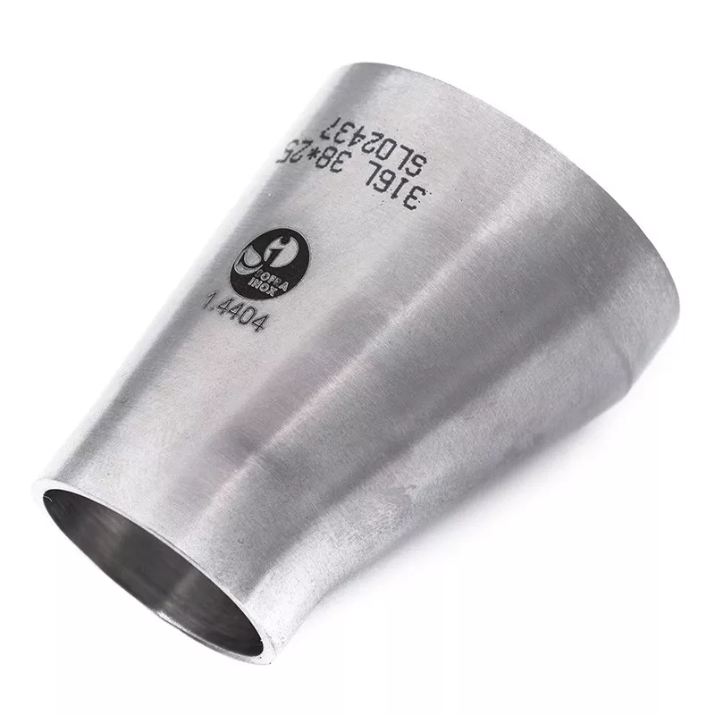 SMS eccentric reducer with short straight parts for food installation, available in stainless steel 304L