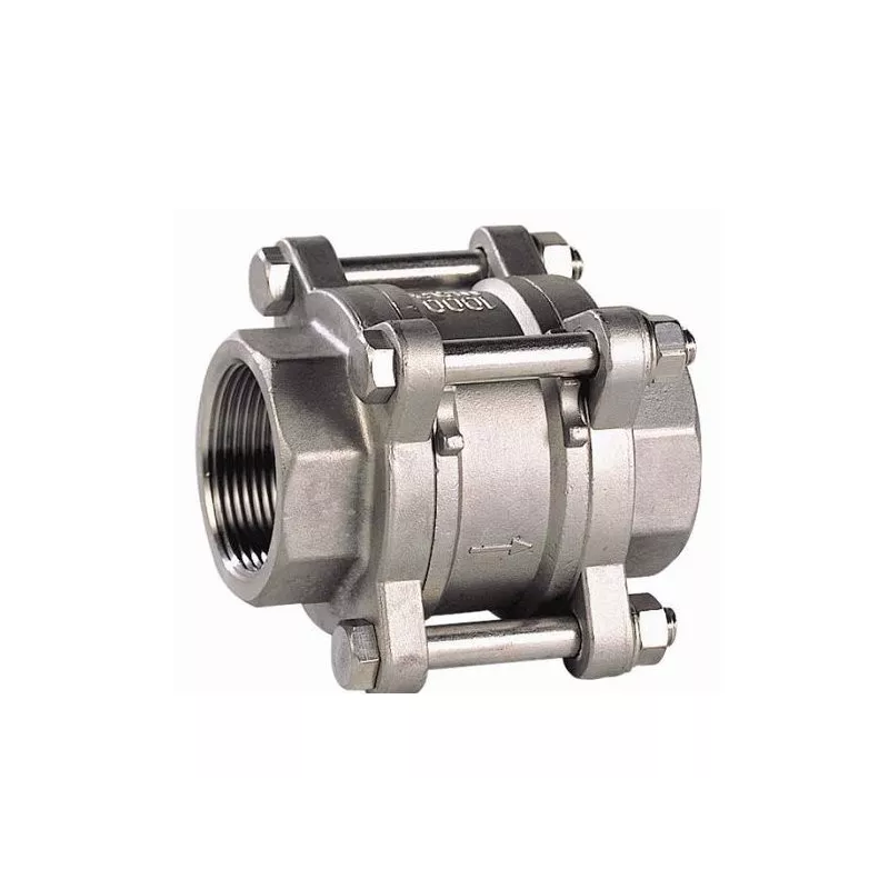 Clapet anti-retour femelle-femelle 3 pièces à valves taraudées gaz BSP, usiné en inox 316.