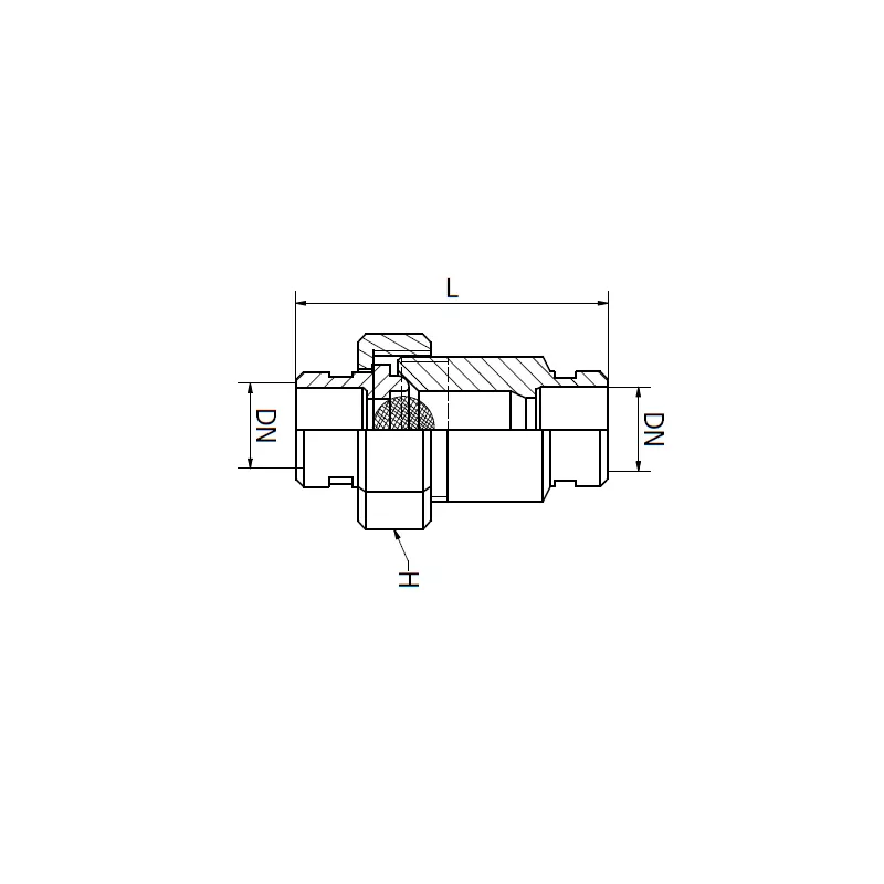 Clapet de non-retour à bille, montage sur tuyauterie verticale, à passage intégral.