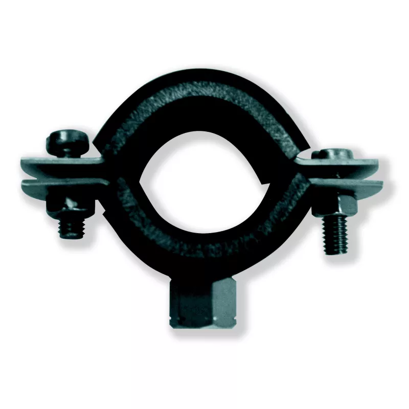 Collier rond de support de tuyauterie, avec tige et manchon d'isolation (-50°C à +120°C) usiné en inox 304, pour les installations industrielles. Diamètre disponilbe : de 1/4" à 6".