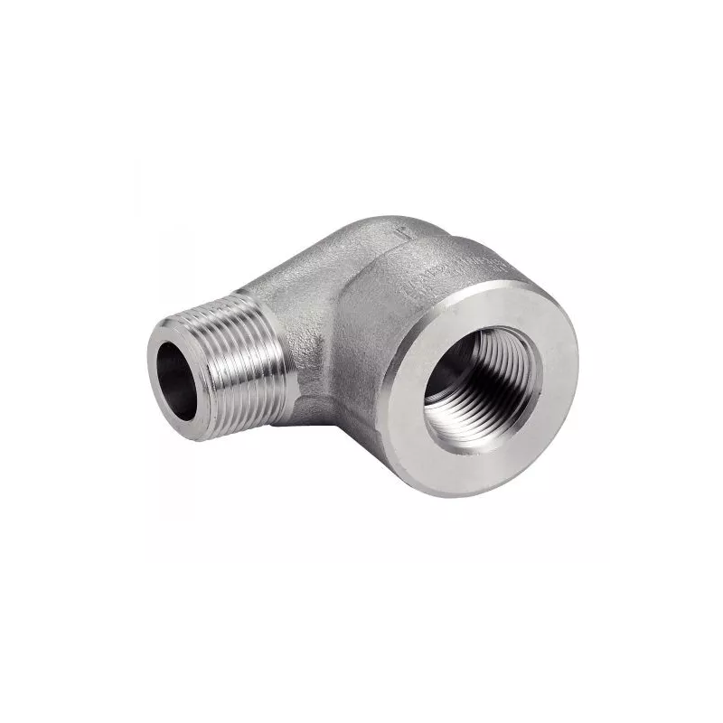 Coude à 90°, mâle-femelle à filetage NPT, usiné en inox 316L, conforme à la norme 3000 LBS pour les installations industrielles.