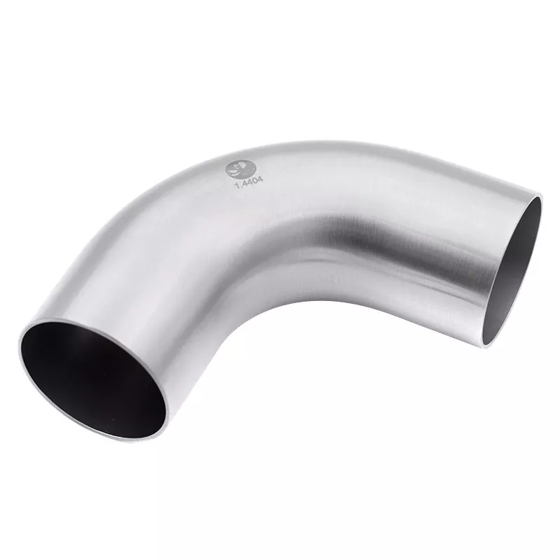 Coude à souder à 90° pour tuyauterie norme SMS, à partie droite (APD), avec un rayon de courbure de 1D