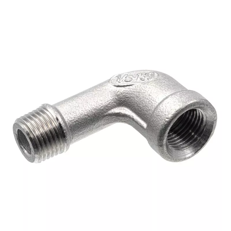 Coude à 90°, moulé en inox 316,  avec extrémités mâle et femelle, à filetage gaz, pour les installations chimiques