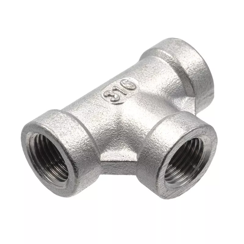 Té femelle moulé en inox 316, à filetage NPT, pour les tuyauteries industrielles des installations chimiques.