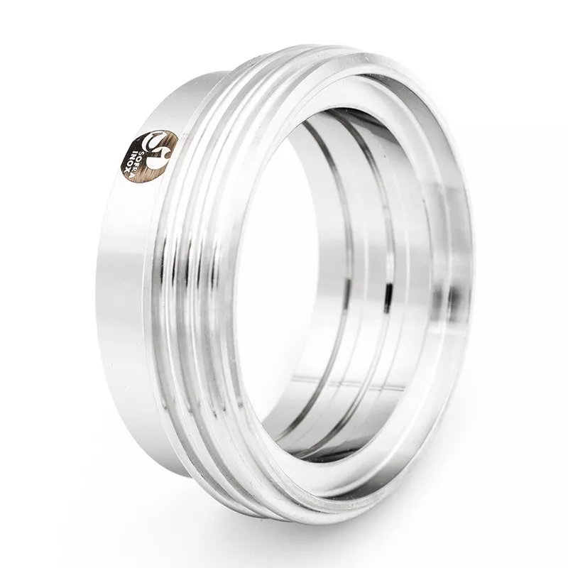 Cette pièce reçoit un joint d'étanchéité à section carrée. Elle est associée à une pièce lisse et à un écrou de serrage cranté pour former le raccord SMS 1145 à dudgeonner.