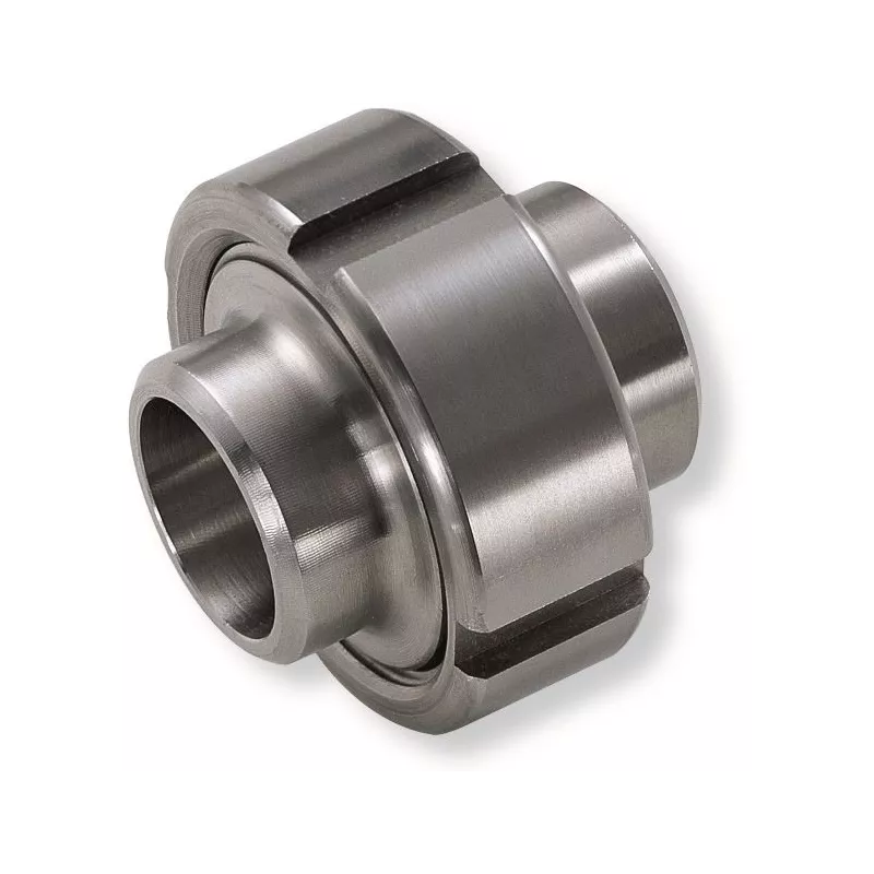 Raccord complet RJFR à souder pour tube ISO, à deux bouts, à passage intégral (I) ou réduit (Venturi). Il est composé d'un embout lisse, d'un embout fileté et d'un écrou de serrage cranté.