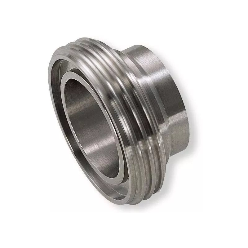 Embout fileté à souder pour raccord RJFR à tube ISO, usiné en inox 316L. Cette pièce accueille le joint à section carrée, qui assure l'étanchéité du raccord. Elle est disponible en passage intégral (RJMI) ou passage réduit (RJMV)