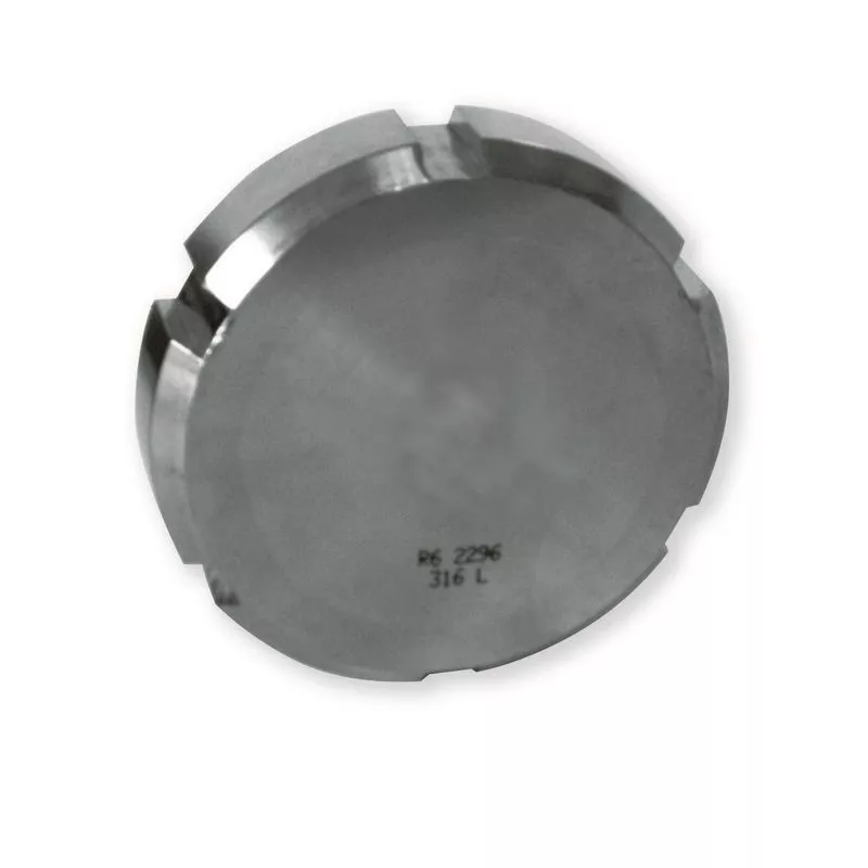 Ecrou bouchon cranté en inox 316L pour raccord RJFR / RJP utilisé pour l'obturation des tuyauteries norme ISO en industrie chimique.