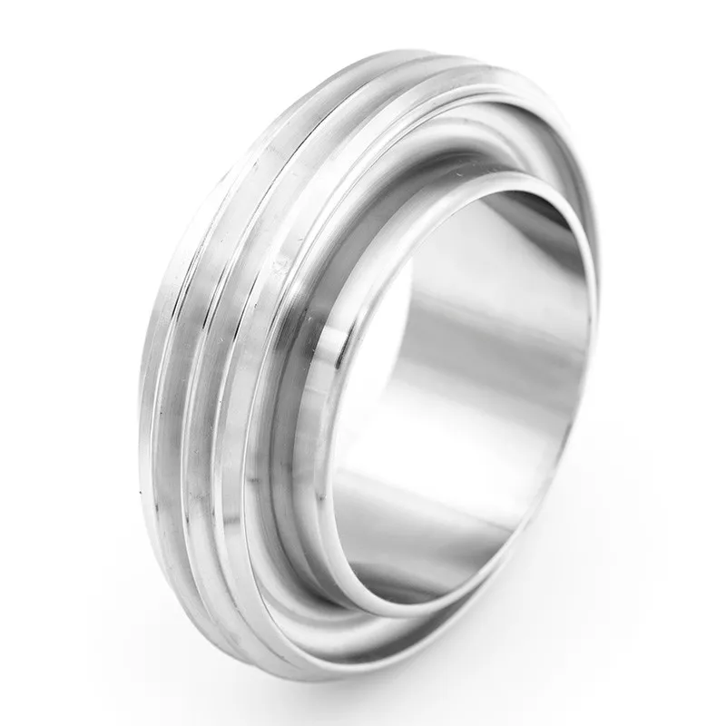 Pièce filetée en inox 316 pour raccord alimentaire conforme à la norme RJT (Ring Joint Type). Cette pièce à souder, qui reçoit le joint d'étanchéité torique, est associée à une pièce lisse RJT pour former le raccord complet. Un écrou hexagonal ou rond assure l'assemblage des pièces.