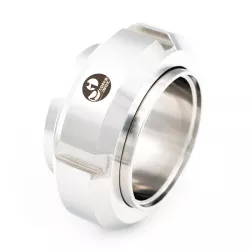 A Macon wine fitting is composed of a threaded male part, a smooth female part, a round notched nut and a flat seal. The parts are available in stainless steel 316 or 304L.