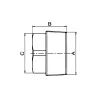 Tapered male cap with gas thread and square head, machined in 316L stainless steel, for use on industrial piping.