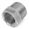 Hexagonal male-female reduction with gas thread, machined in stainless steel 316L EN 10272, for industrial threaded piping.