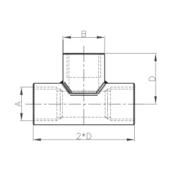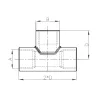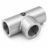 Welded tee with gas threaded female ends, made of 316L stainless steel, for industrial piping.