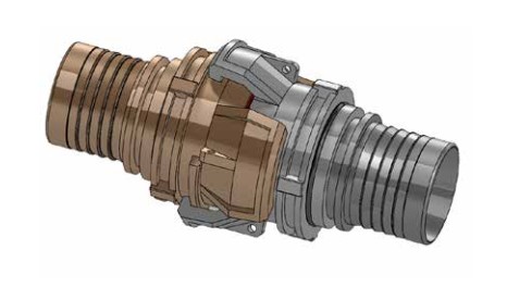 The Guillemin symmetrical fitting (also called fireman's fitting or DSP fitting) has been used in France since the 19th century, to connect two pipes, using a system comprising two half-fittings and a flat joint. In this type of fitting, there is no male/female differentiation, the two parts to be assembled are identical. The aim is to obtain a watertight, quick to assemble, and vibration resistant connection.