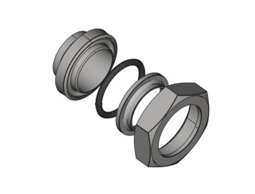 The RJT fittings we offer meet the BS 4825 sanitary standard and consist of a 304 stainless steel hexagonal or round locknut, a 316 stainless steel threaded part, a liner and a nitrile, EPDM or FKM O-ring.