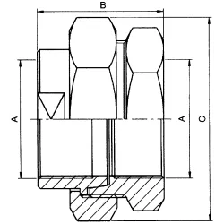 3-piece Union fitting combining 2 female threaded parts and an octagonal clamping nut made of stainless steel 1.4409 (manufactured outside the EU) to ensure the tightness of the fitting