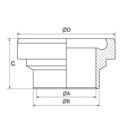 This part must be combined with a threaded part, an O-ring seal and a tightening nut to form the complete DIN 11853-1 fitting.