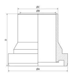 Long liner for aseptic connection DIN 11864-1 form B to (square joint), compatible with SMS pipelines. This part must be combined with a threaded part and a clamping nut.