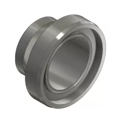 Short threaded piece made of stainless steel 316L (1.4404), for aseptic fitting DIN 11864-1 form B (square joint), with ISO outlet. This part must be combined with a smooth part and a clamping nut to form the complete aseptic fitting.