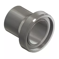Long threaded piece for aseptic connection DIN 11864-1 form B to (square joint), compatible with SMS piping. This part must be combined with a liner and a lock nut.