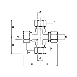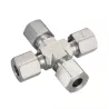 Equal-leg cross to DIN 2353, machined from 316 stainless steel, Series L (medium pressure)