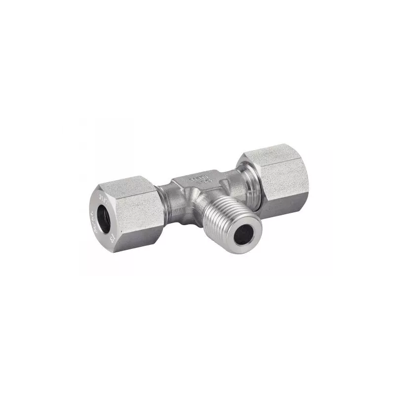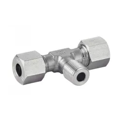 DIN 2353 tee with male end, machined in stainless steel 316, Series S (high pressure), for the chemical industry