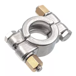 Clamp for Clamp DIN 32676, double joint, made of stainless steel 304 (EN 10213), with domed hexagonal nut.