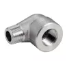 90° elbow, male-female with NPT thread, machined in 304L stainless steel, complies with the 3000 LBS standard for industrial installations.