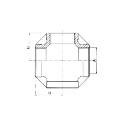 316 stainless steel molded cross, female ends, gas threaded, for industrial piping.