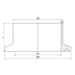 Clamp ferrule of 21.5mm length machined in 316 stainless steel (EN 10213 standard), compatible with SMS standard clamp fittings, with an average roughness (Ra) lower than 0.8µ.