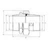 3-piece union composed of 2 male threads in 316L stainless steel, an octagonal nut and a PTFE gasket, compatible with NPT threaded pipes.