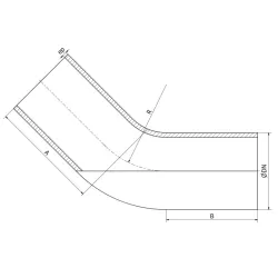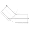 45° ISO Bio-Pharma standard elbow, machined in stainless steel 316L (1.4404) for pharmaceutical installations