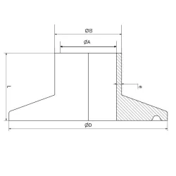 Standard ISO clamp ferrule, 21.5mm long, machined from 316L stainless steel (from outside EU), with an Ra of less than 0.8µ.
