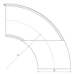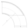 90° elbow radius 1.5D metric standard, available in 316L stainless steel, with a diameter between 20mm and 254mm.
