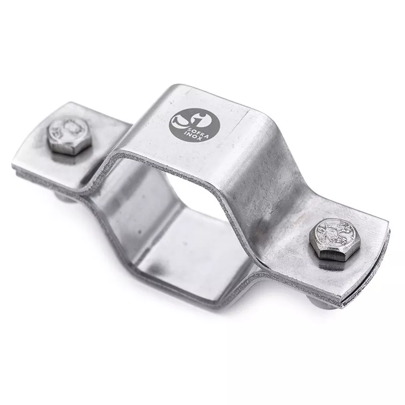 Double screw hexagonal pipe holder made of stainless steel 304, without rod, meeting the SMS standard, used to reinforce the solidity of the installation and to fix the piping.