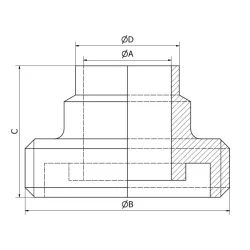 Threaded weld end for RJFR to ISO tube, machined in 316L stainless steel. This part houses the square section gasket, which ensures the tightness of the fitting. It is available in full bore (RJMI) or reduced bore (RJMV)