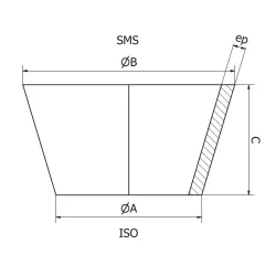 316L stainless steel concentric reducer to connect an SMS pipe with an ISO pipe in a food plant