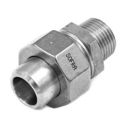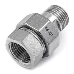Ce type de raccord Union assure une double étanchéité par le contact métal sur métal des embouts mâle et femelle, à profil conique, et par la compression d'un joint PTFE. L'ensemble de la pièce est amagnétique.