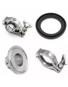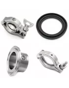 Un raccord Clamp en inox se compose de 2 ferrules identiques, d'un joint aseptique (en EPDM, VITON, PTEFE, ou Silicone), et d'un collier de serrage. L'étanchéité du raccord est obtenue par compression du joint entre les 2 ferrules. Le raccord Clamp à souder est le type de raccord le plus utilisé dans l'industrie pharmaceutique et cosmétique.