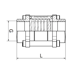 Clapet anti-retour femelle-femelle 3 pièces à valves taraudées gaz BSP, usiné en inox 316.