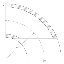 Coude à 90° en inox 316L, roulé-soudé, Schedule 40S, pour iinstallation industrielle norme ANSI.