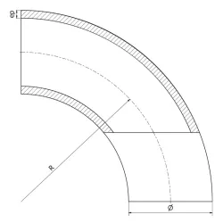 Coude ISO/gaz rayon 3D à 90° roulé soudé pour tuyauterie ISO utilisée dans les installations chimiques. Disponible en inox 316L, avec un diamètre allant de 13.5mm à 406.4mm