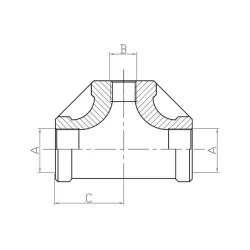 Té réduit à 3 extrémités femelle, filetage gaz, moulé en inox 316, pour tuyauterie filetée industrielle.