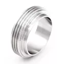 Pièce filetée pour raccord laitier norme IDF, recevant le joint d'étanchéité. Cette pièce usinée en inox 316 est associée à une pièce lisse pour former le raccord complet.