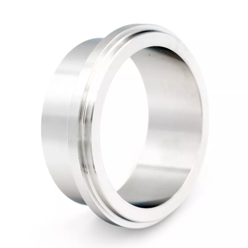 Pièce lisse en inox 316 (1.4401) pour raccord laitier répondant à la norme IDF (International Dairy Federation). La pièce est associée à une pièce filetée, et à un écrou de serrage pour former le raccord IDF complet.