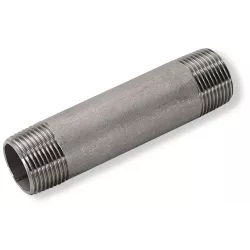 Mamelon tube de 150mm de long, à 2 embouts mâles, à filetage gaz, usiné en tube inox 316L EN 10217-7, pour tuyauterie chimique.