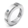Ecrou rond à crans en inox 304 (1.4301) pour raccord alimentaire répondant à la norme DIN 11851. Cet écrou cylindrique est destiné à maintenir la pièce filetée et la pièce lisse qui entourent le joint d'étanchéité, de forme semi-torique. Nous proposons des écrous du diamètre DN10 au DN150.