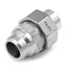 Raccord Union 3 pièces à portée conique, composé de 2 pièces lisses en inox 316L 1.4409 (fabrication hors UE) et d'un écrou de serrage octogonal, en inox 316. Ce raccord Union est destiné aux installations chimiques et pharmaceutiques, il est proposé du DN 5 au DN 80.